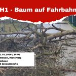 Zum bereits zweiten Einsatz des Jahres wurden die Embsener Einsatzkräfte um 14:02 Uhr am Neujahrstag gerufen. Ein Baum mit ca. 40cm Stammdurchmesser blockierte die Fahrbahn im Gewerbegbiet “Kiefernring”. Mit Kettensägen und Muskelpower wurde das Hindernis beseitigt. Nach etwa 20 Minuten waren die 15 Feuerwehrler