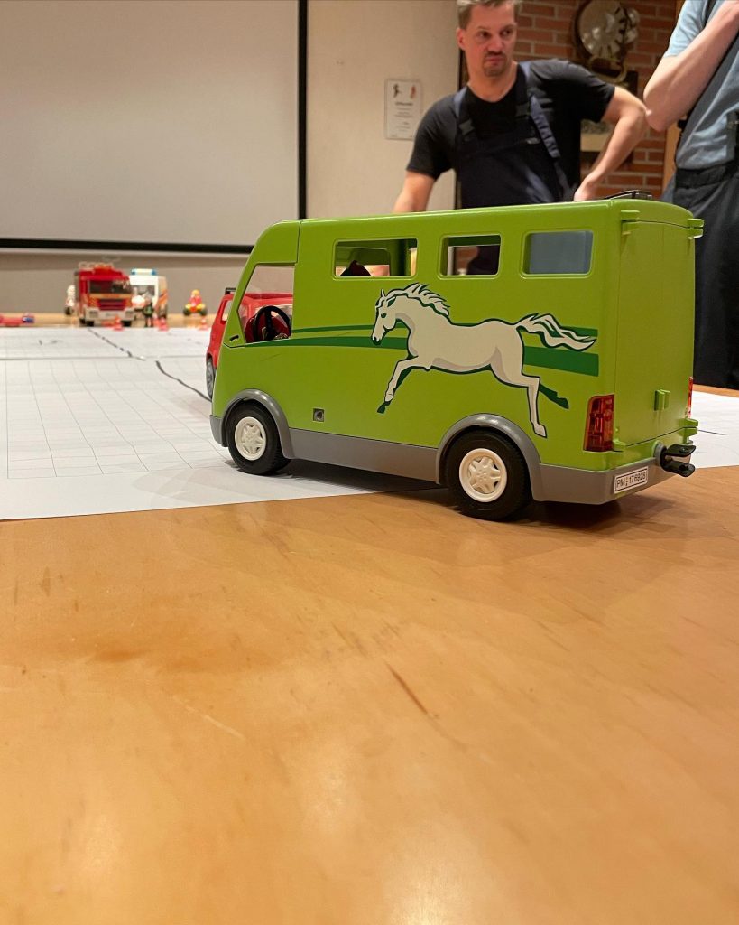 Gestern Abend im Gruppendienst der Feuerwehr Deutsch Evern hatten wir Gelegenheit mal wieder mit Playmobil zu „spielen“. Das Ganze war natürlich kein Spiel, sondern der didaktisch gut vorbereitete Übungsdienst zum Thema „Gefahrgutunfall“., Maßnahmen der erst eintreffenden Gruppe. Mit den Figuren konnte im Unterrichtsraum sehr gut dargestellt werden, welche Maßnahmen zu treffen sind und wo Einsatzkräfte und Fahrzeuge taktisch gut positioniert sind. Für die Fachleute: Stichworte wie – Absperrgrenze – GAMS Regel – Sofort Dekontamination fielen an diesem Abend öfter. Wer wissen möchte, was sich hinter diesen Stichworten verbirgt, schaut doch mal bei unseren Übungsdiensten vorbei.