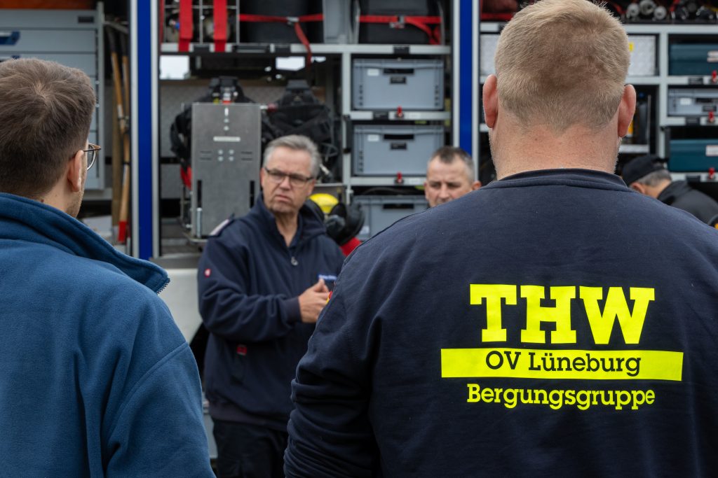 Der zweite Tag begann mit einem gemeinsamen Frühstück, bevor es nach Embsen zur Ausstellung über den Bevölkerungs- und Katastrophenschutz ging. Der Einladung waren zahlreiche Organisationen gefolgt, darunter das THW, die DLRG, das DRK, die Feuerwehr Lüneburg, die Polizei Lüneburg sowie die GFFFV-Einheit aus dem Landkreis Uelzen. Sie präsentierten ihre Einsatzfahrzeuge und Einsatzkonzepte und standen den Gästen für fachliche Gespräche zur Verfügung.