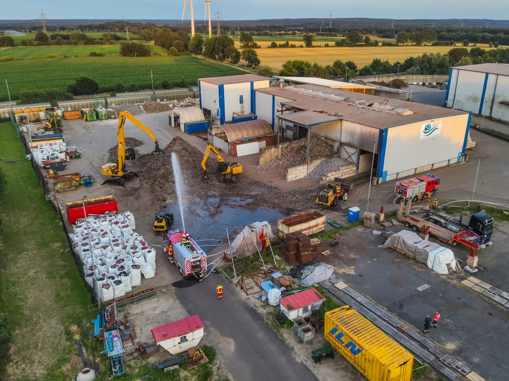 Am Abend des 15.07.2024 wurden die Ortswehren Melbeck, Deutsch Evern sowie der Einsatzleitwagen aus Embsen zu einem Recyclingunternehmen in das Industriegebiet Lüneburg-Süd alarmiert. Vor Ort sollte laut Anrufer Schreddermaterial in einer Halle brennen.