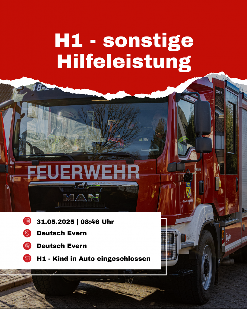 Am Morgen des 31.05.2025 um 08:46 Uhr wurde die Ortswehr Deutsch Evern zu einer Hilfeleistung alarmiert. Ein Kleinkind war in einem PKW eingeschlossen, die Schlüsselbatterie war leer.
