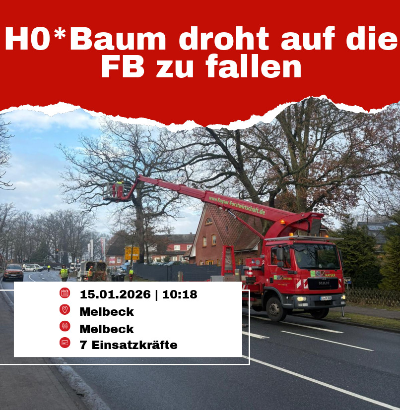 Am Donnerstagvormittag, den 15. Januar 2026, wurde die Ortsfeuerwehr Melbeck um 10:18 Uhr zu einer Gefahrenlage an die Bundesstraße 4 in Melbeck alarmiert. Ein Baum drohte auf die Fahrbahn zu stürzen und stellte eine erhebliche Gefahr für den Straßenverkehr dar.